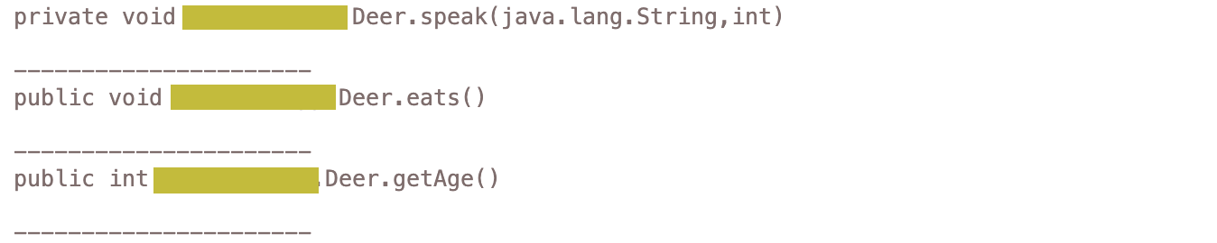 method.invoke(deer, "먀아아아아아~ ", 5);