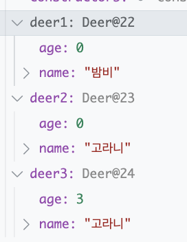 Object deer3 = constructor3.newInstance("고라니", 3);